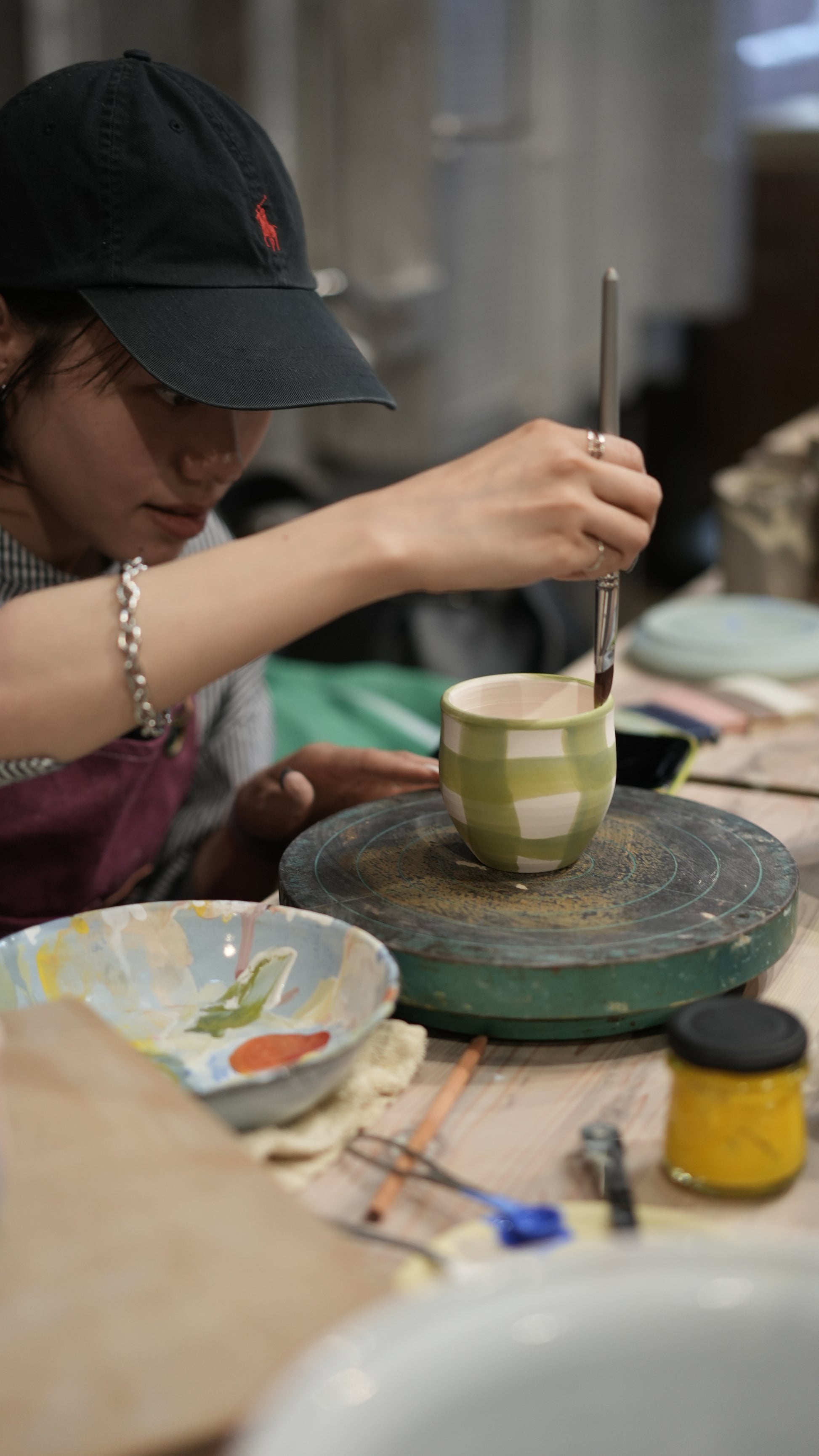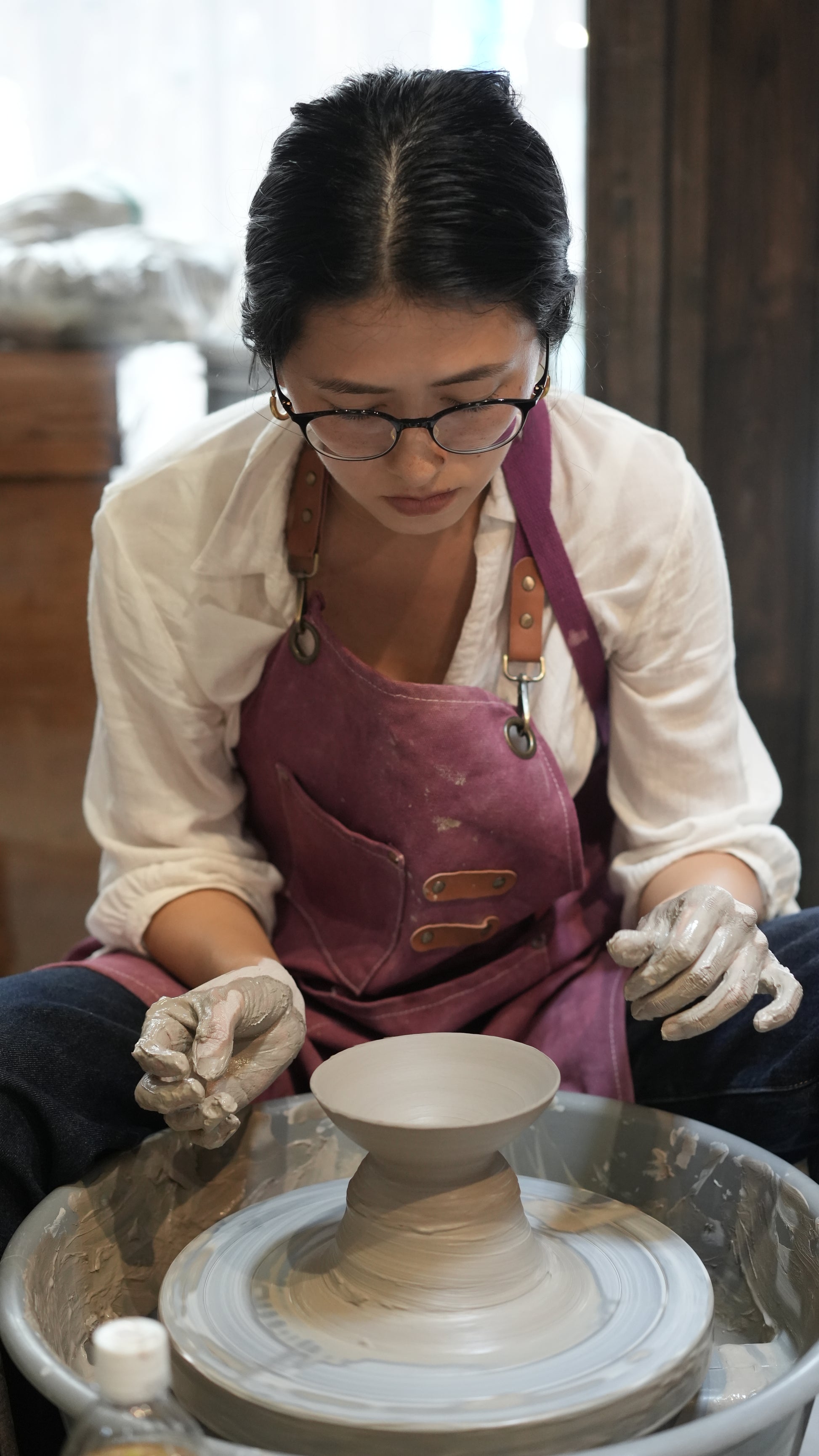 Members handle all processes such as wedging, forming, trimming, glazing, and cleaning.